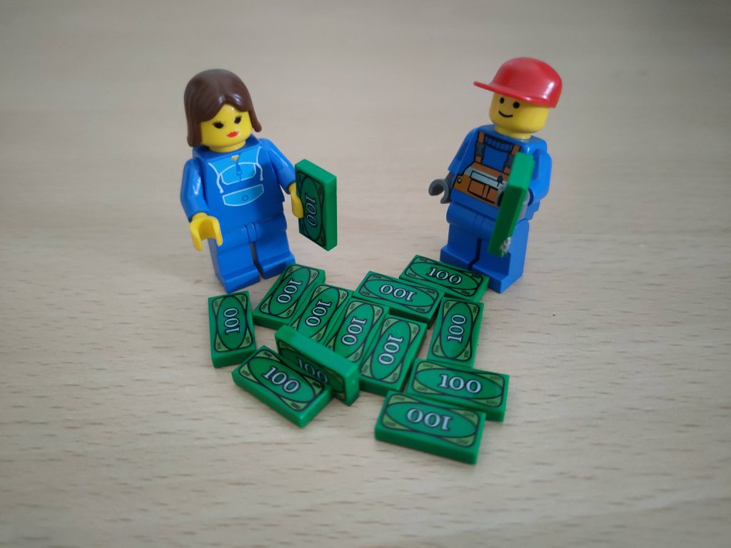 grüner Lego GeldhaufenWenn mein Gehalt am Ende des Monats auf dem Girokonto ankommt, starten bei mir in den nächsten 4 Woche die unterschiedlichsten Daueraufträge und überweisen genau automatisch vorher definierte Beträge auf meine anderen Konten. Somit verschwindet das Geld relativ schnell aus meinem „Sichtbereich“ und landet gleich dort, wo es früher oder später einmal gebraucht wird. (Ausführlich findest du das Thema Kontenmodell hier). Im Grunde habe ich aber einfach noch 2-3 weitere kostenlose Konten (Übersicht verschiedene Kontenmodelle.) und ein Aktiendepot, auf die ich das Geld per Dauerauftrag gleich weiterschicke.